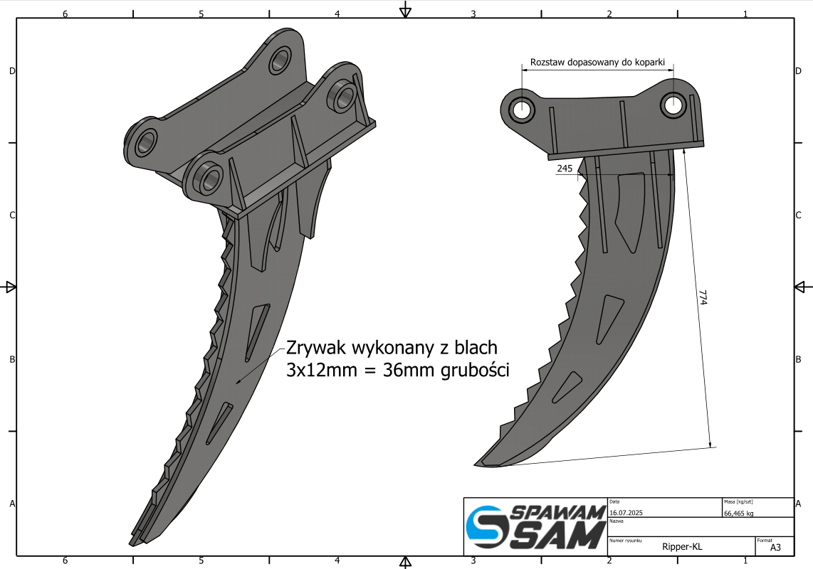 Zrywak do korzeni to idealne rozwiązanie dla osób, które chcą samodzielnie złożyć i pospawać osprzęt do swojej koparko-ładowarki. Produkt dostarczany jest w formie zestawu wyciętych i zagiętych blach – gotowych do spawania, z załączoną instrukcją montażu.